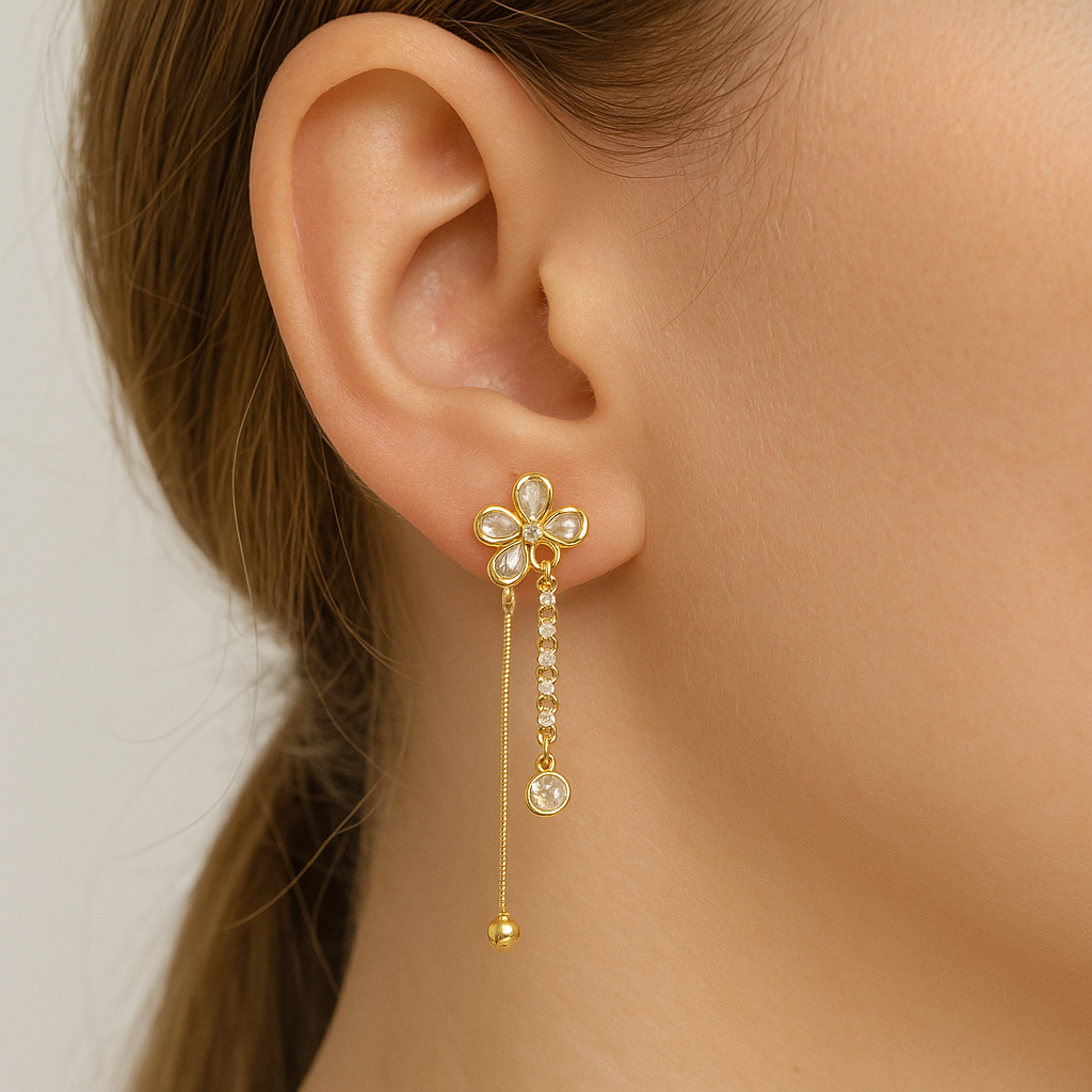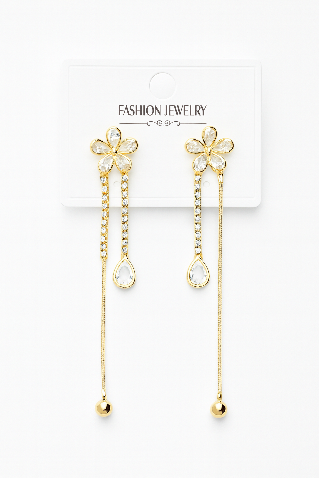 Elegant Gold-Plated Floral Drop Earrings for Women & Girls