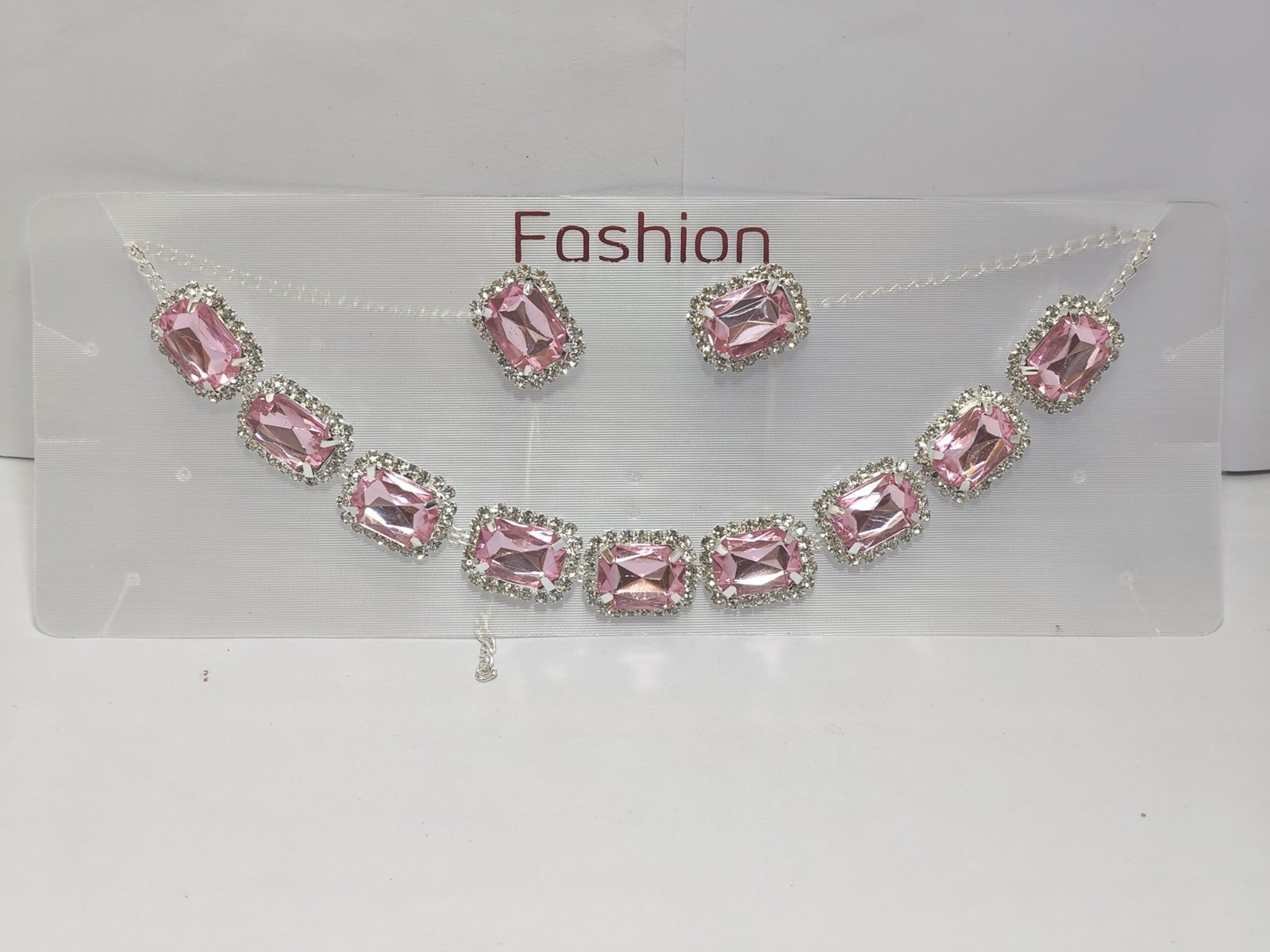 Add sparkle to your outfit with this stunning silver-plated necklace set adorned with pink rectangular stones. Perfectly designed for weddings, parties, and festive occasions, this elegant jewelry enhances your feminine charm. Lightweight, comfortable, and crafted with high-quality material for long-lasting shine.