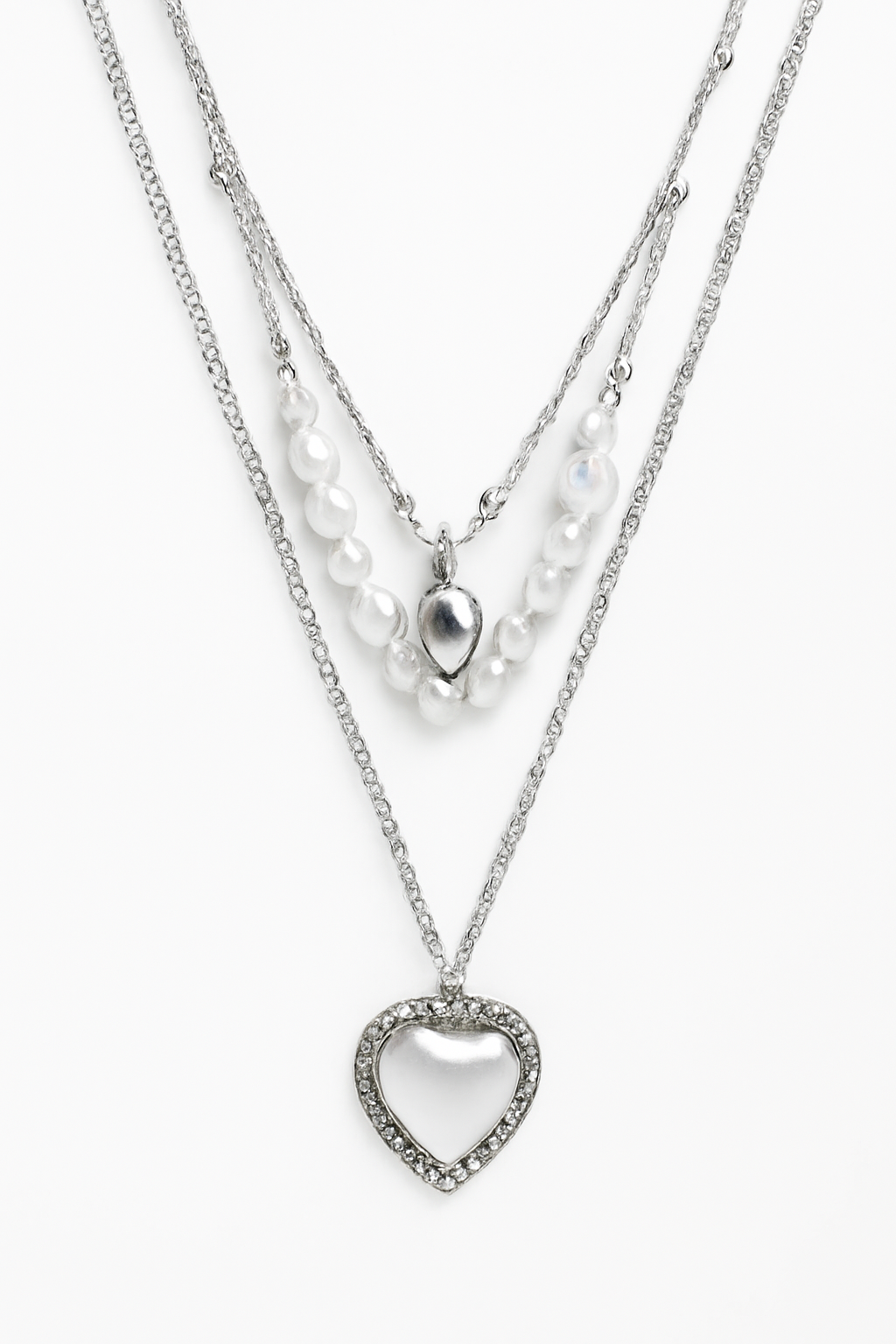 Trendy Silver-Plated Multi-Layer Pearl & Heart Pendant Necklace for Women and Girls