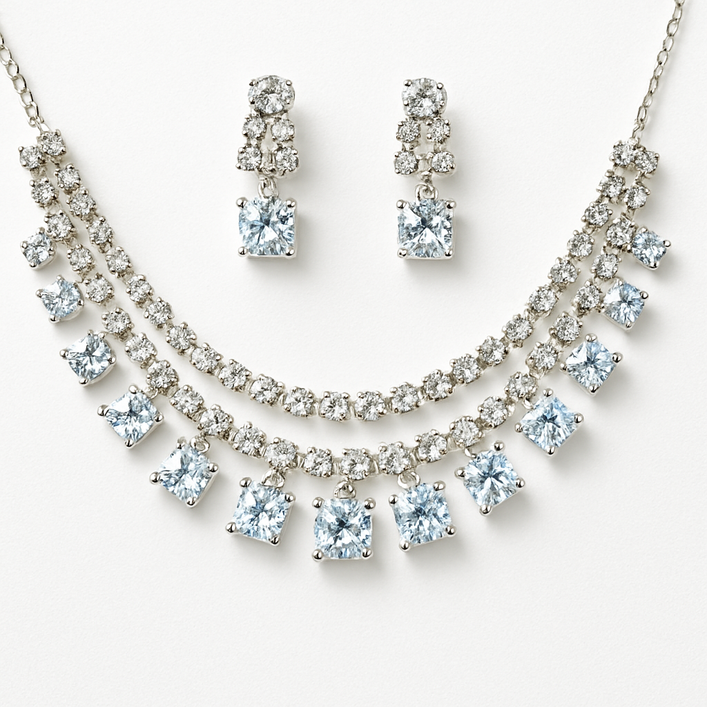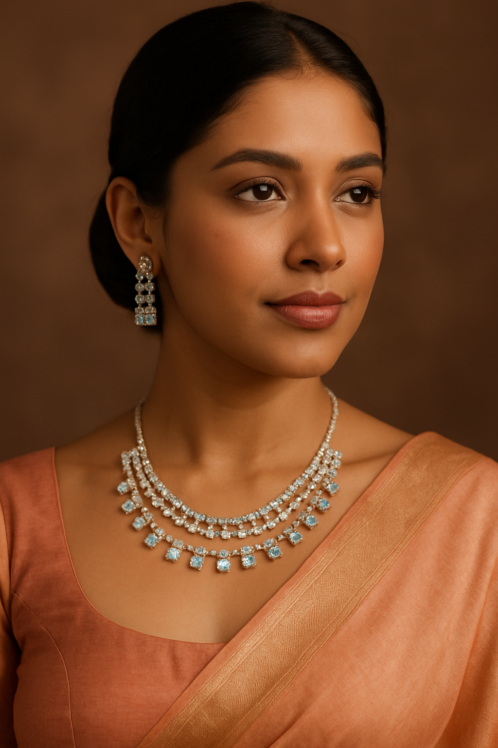 Add sparkle to your festive look with this elegant Silver Plated American Diamond Necklace Set. Designed with high-quality cubic zirconia stones, the necklace comes with matching earrings, making it a perfect choice for weddings, parties, engagements, and festive occasions. Lightweight, durable, and stylish – a must-have jewellery set for women and girls.